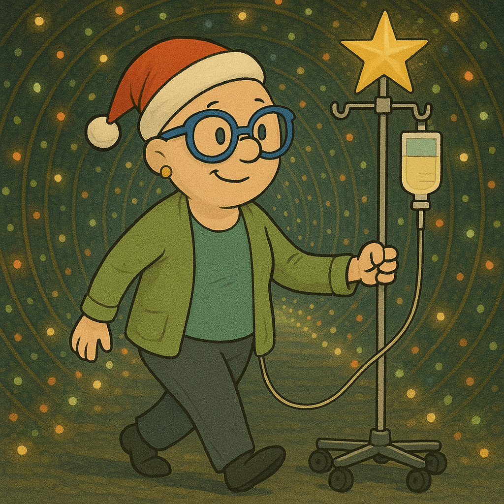 Can you even imagine the joy of a chemo-free holiday? I might just wrap myself in twinkle lights and call it a miracle. Likely completely bald by then, I can wear a Santa Hat!